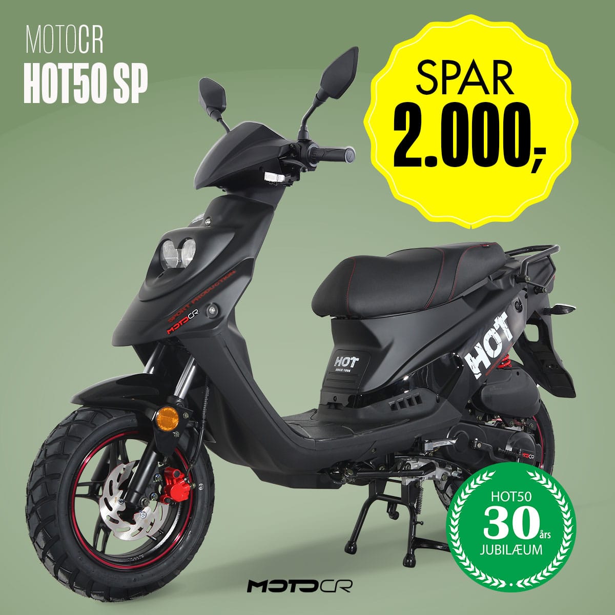 De røde detaljer på bremsekalibre, støddæmper og fælgsiderne løfter SP op i en liga, hvor selvtillid og attitude går hånd i hånd. Du får endvidere en bedre udstyret HOT50, der altid får dig sikkert ud og hjem.